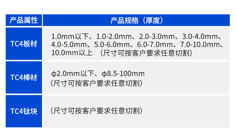 主营产品:钛合金板、钛块、钛棒